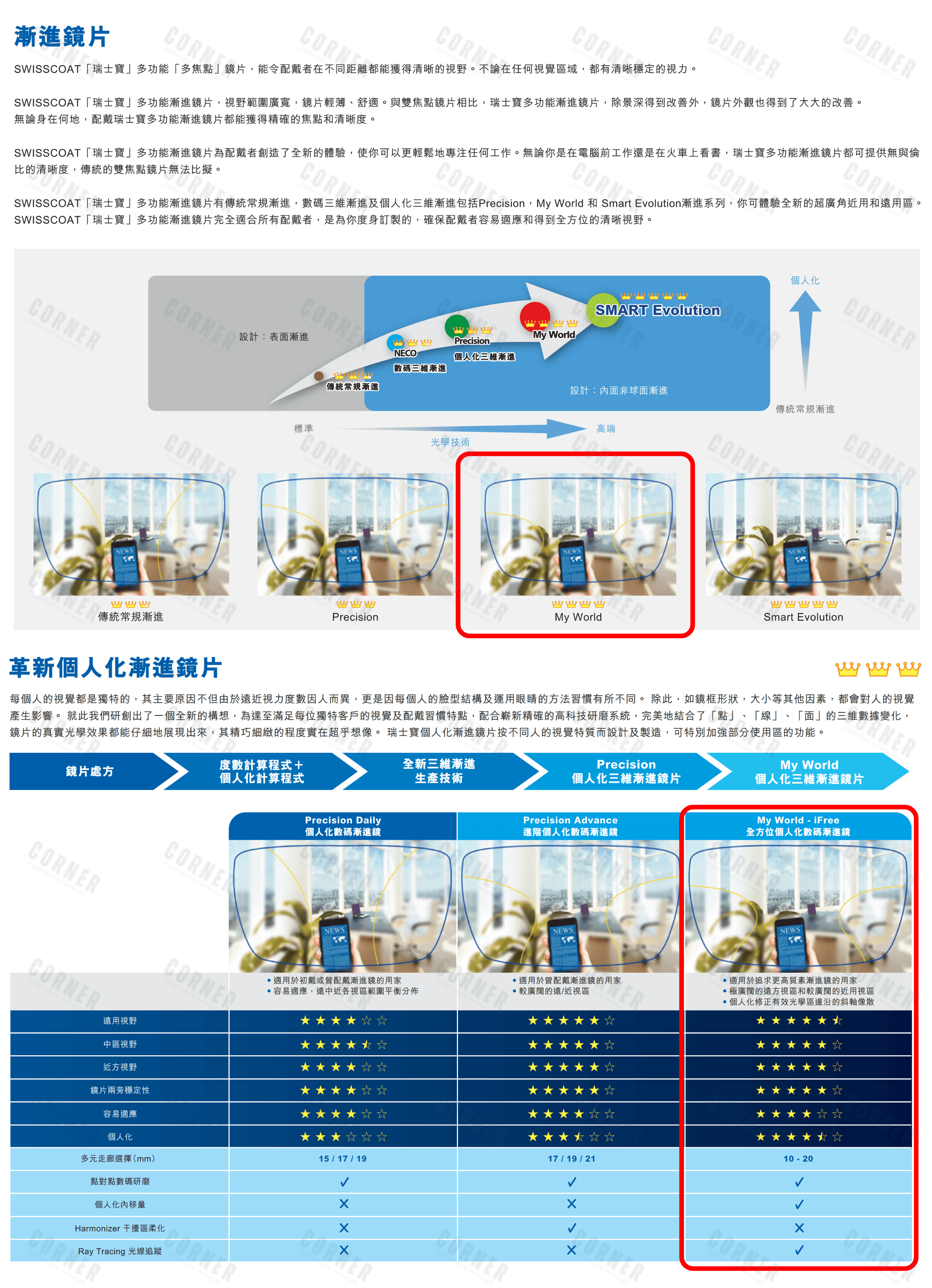 SwissCoat 瑞士寶深明不同眼鏡配戴者因應他們不同生活習慣,對眼鏡的要求都不一樣。 以高端精準的科技致力給我們為每一位顧客訂製鏡片,務求為我們的顧客提供最舒適的視覺體驗。